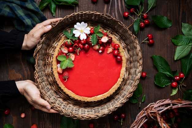Для украшения верхней поверхности выберите свежие ягоды: малину, голубику или клубнику. Расположите их в центре или по периметру в симметричном порядке, чтобы создать яркий контраст с красным бисквитом.